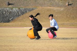 今回は、小学生、中学生の部とも、サーキットトレーニングリレーを中心としたプログラムでした。バランスボールジャンプやハードルジャンプ、テニスボール投げ等、6種目をサーキットで回りリレーを行いました。チームの応援にも熱が入り、大きな声で応援をして盛り上がりました。